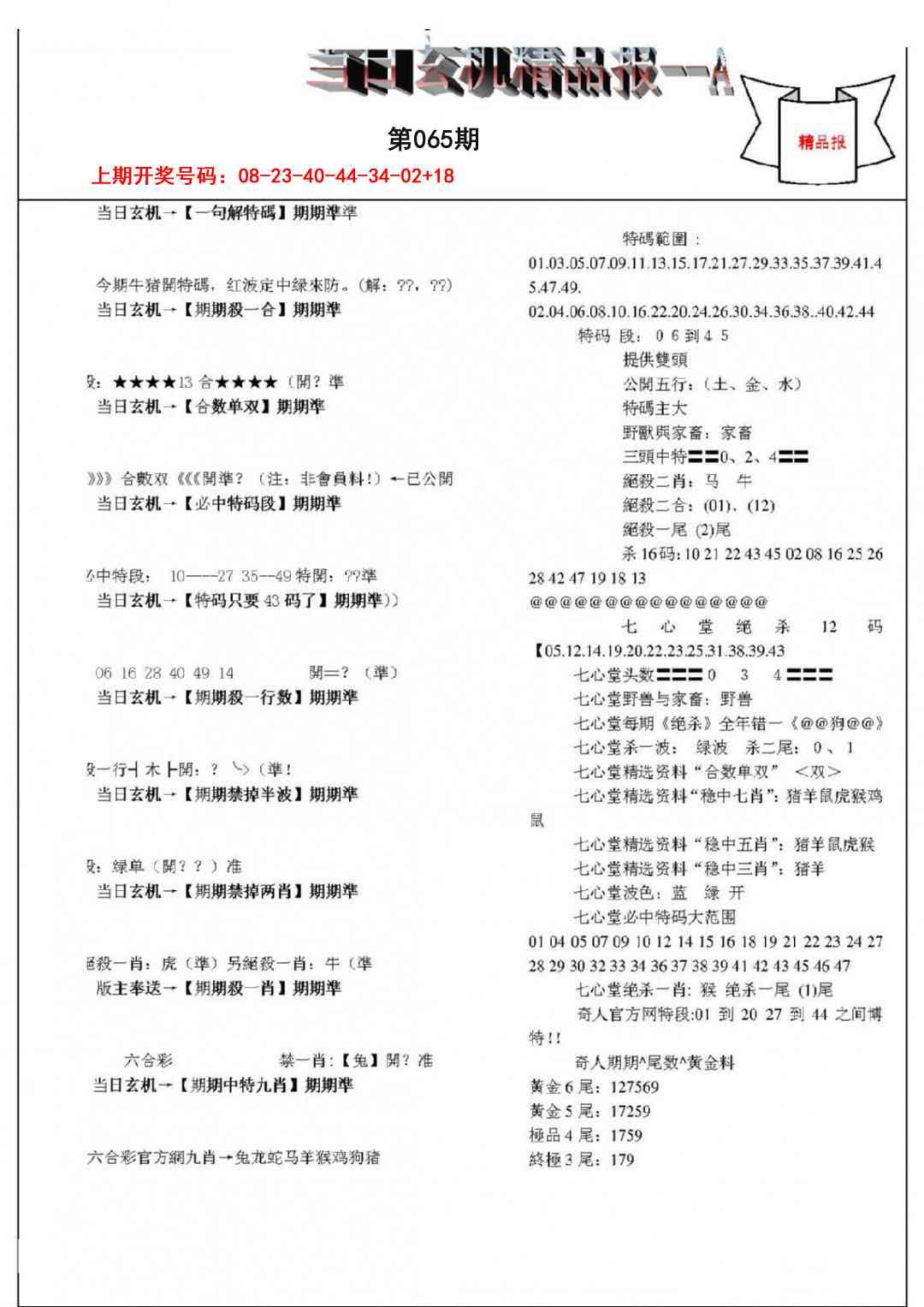 当日玄机精品报A